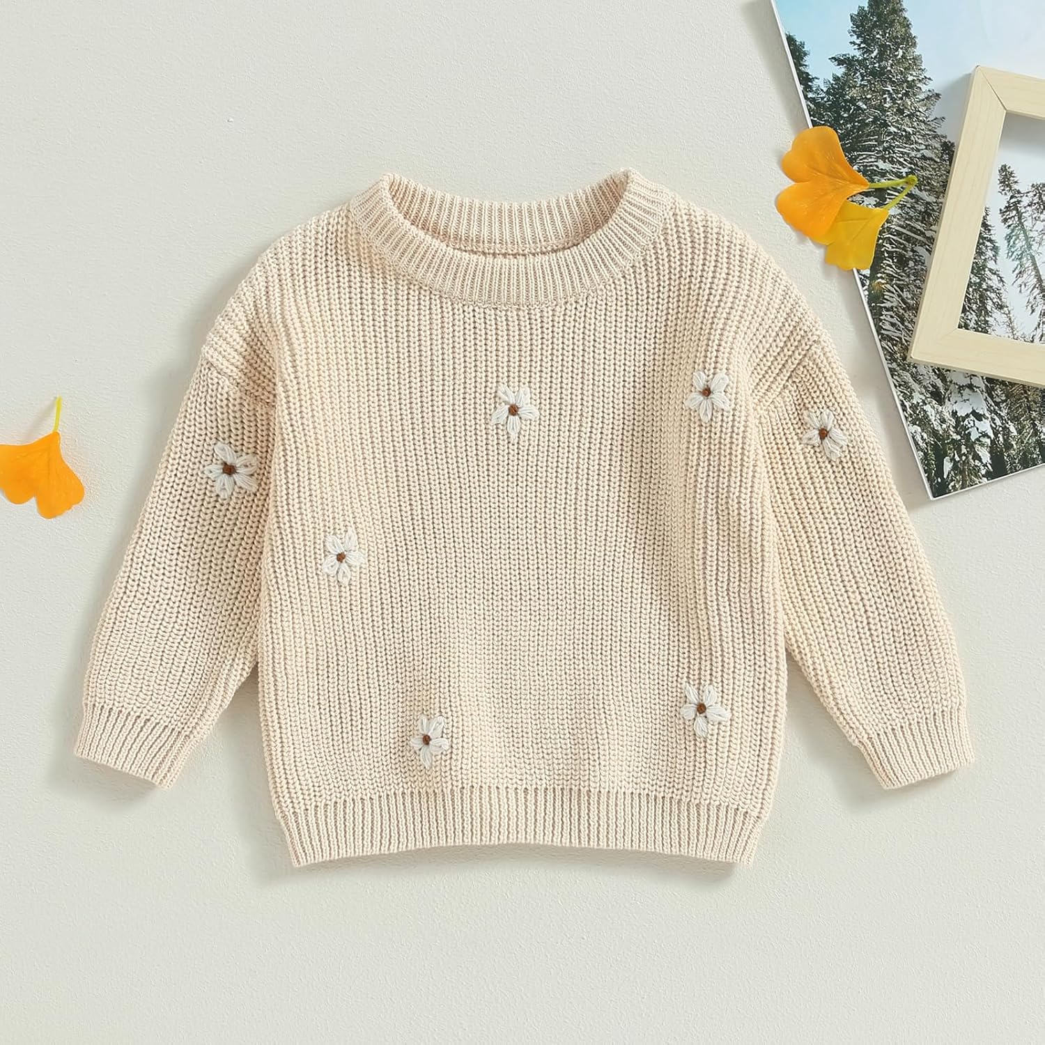 Baby Girl Winter Clothes Cute Flower Sweater Crewneck Pullover Long Sleeve Knit Newborn Infant Sweaters