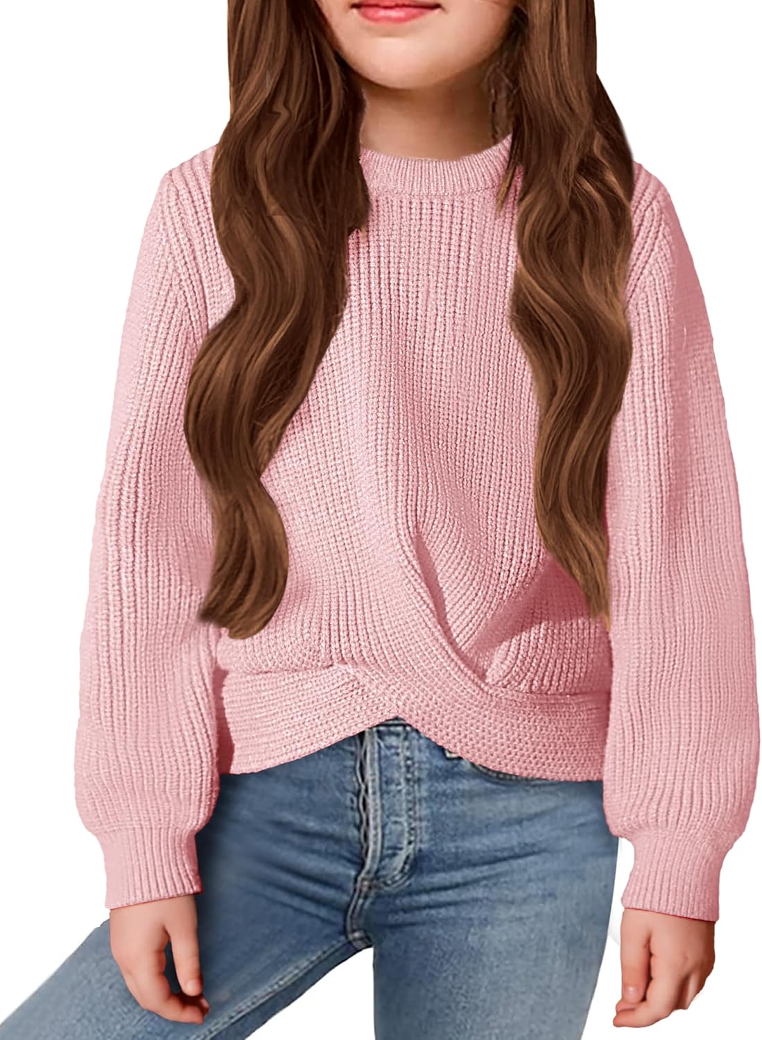 Girl’s Sweaters Kids Twist Front Cute Pullover Knitted Jumper Fall Winter Clothes