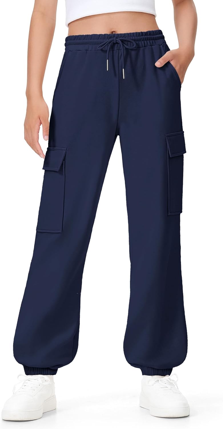 Girls Sweatpants Kids Baggy Cargo Pants Athletic Drawstring Jogger Pants with Pockets