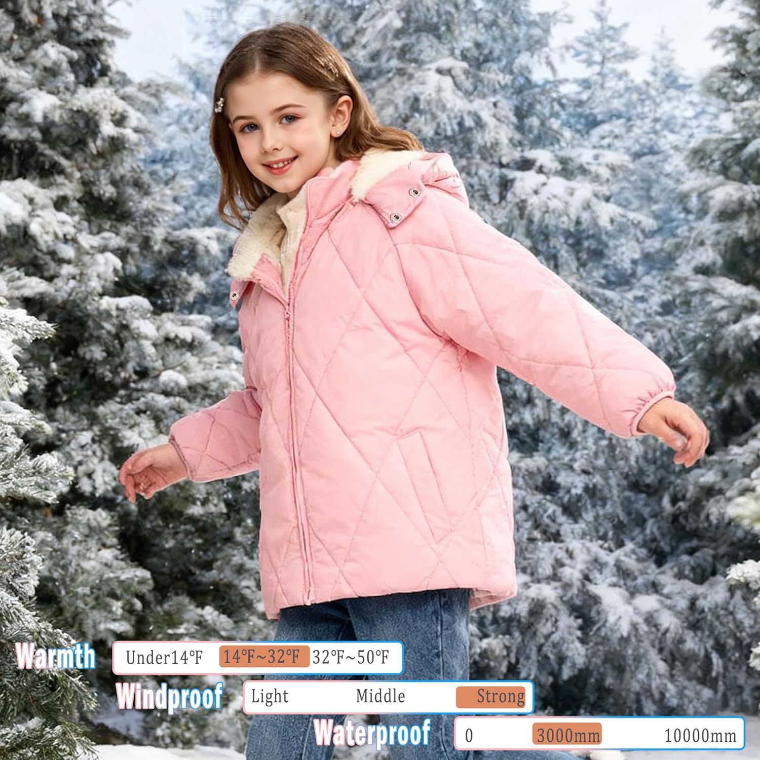 - Warm & Weatherproof Kids puffer Coat: Cozy sherpa fleece lining and hood inner feel soft against skin. The tough outer shell is waterproof, windproof, and built to last. Lightweight high-tech insulation locks in serious warmth