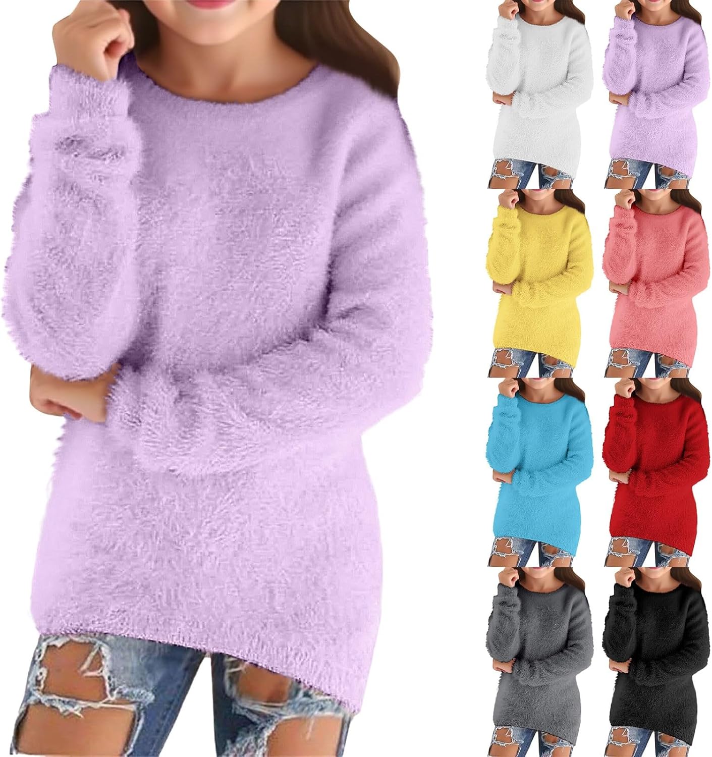Sweaters for Girls Fall Fashion Casual Lightweight Long Sleeve Cozy Pullovers Loose Fluffy Fuzzy Jumper Sweater